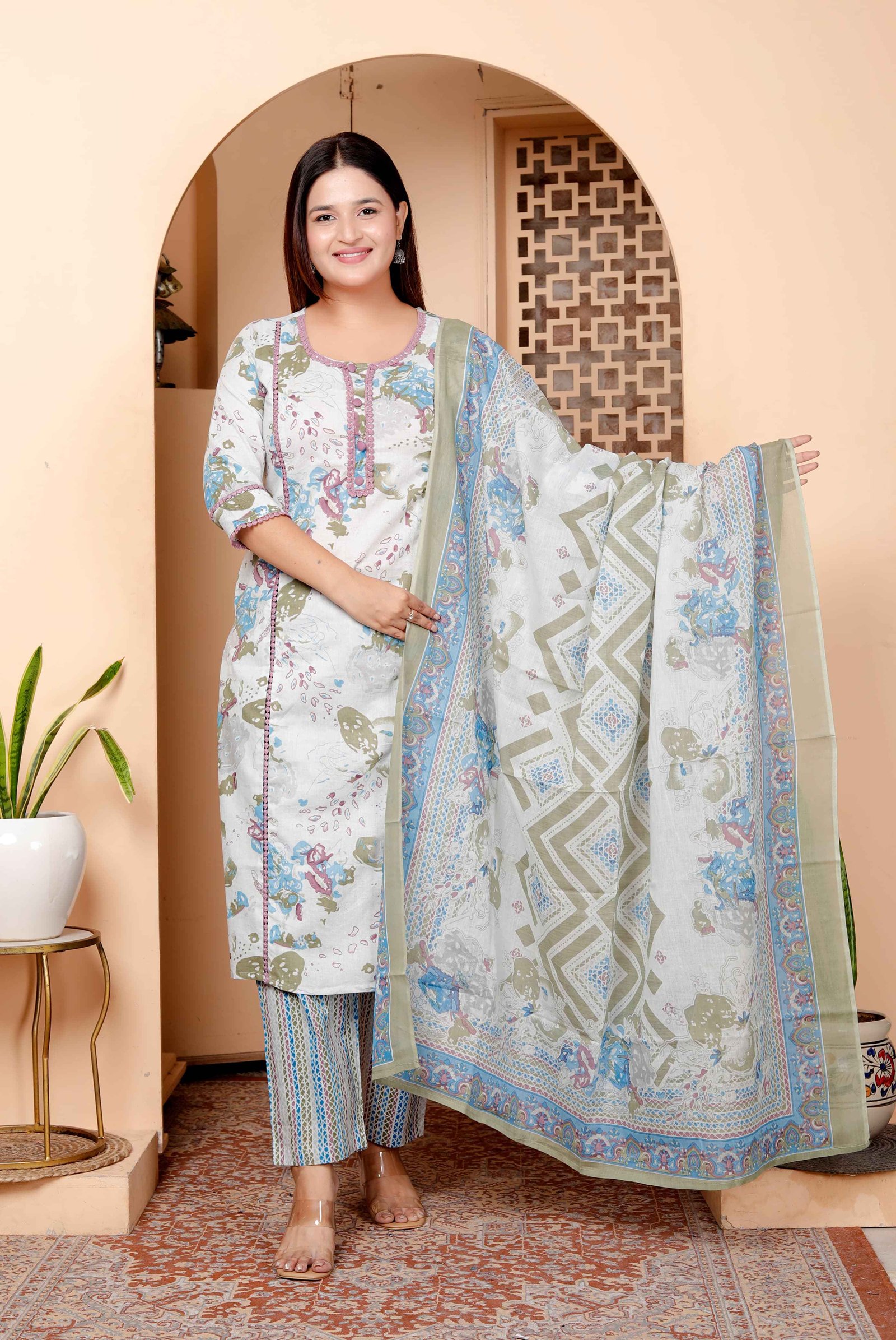 "Pastel Dream Handblock Printed Cotton Suit